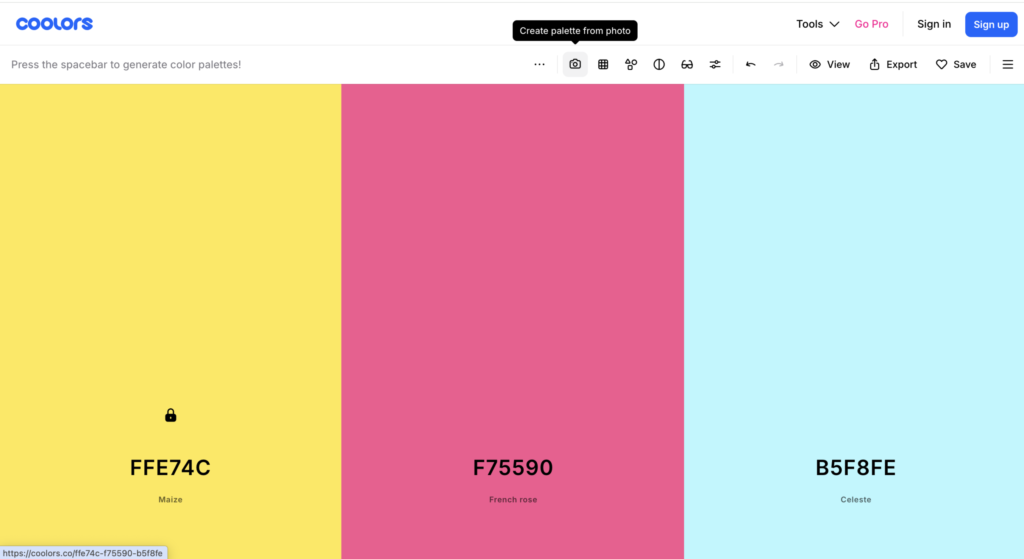 こちらの配色ツールは、指定した色に合う色をスペースを押すとどんどん探してくれるツールでとても使いやすい…!なんだかんだ色に迷ったらいつもこれを使ってます。