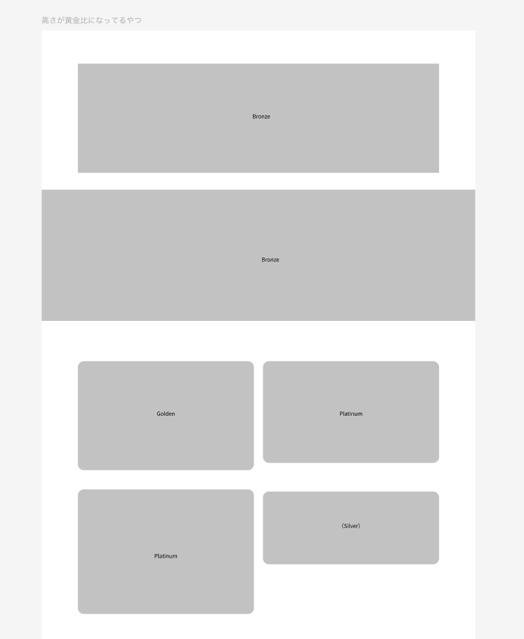 なのでfigma上に黄金比率、プラチナ比率、など必要そうな比率を先に作ってそれをコピーして必要なところに埋めていきました。縦横比を変えなければ問題ない!